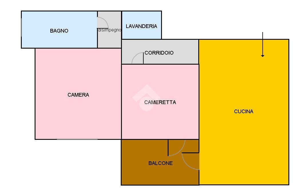 Ingresso su comoda cucina-soggiorno con accesso al balcone